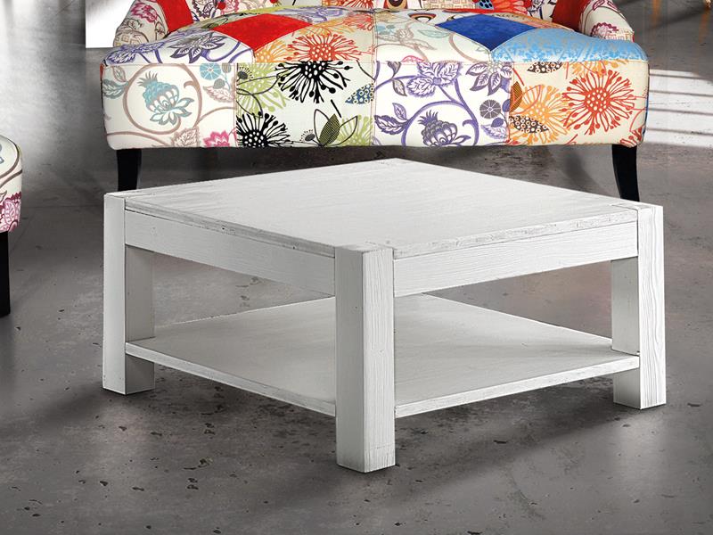 Tavolo in legno massello di abete bianco spazzolato. Dimensioni cm.80x80x40h