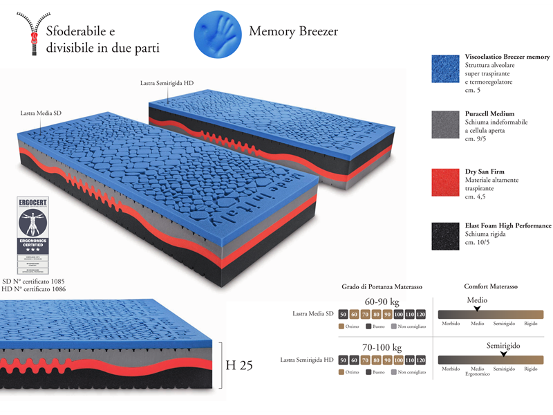 •Viscoelastico Breezer Memory, materiale di nuova generazione, la cui conformazione cellulare aperta garantisce il libero