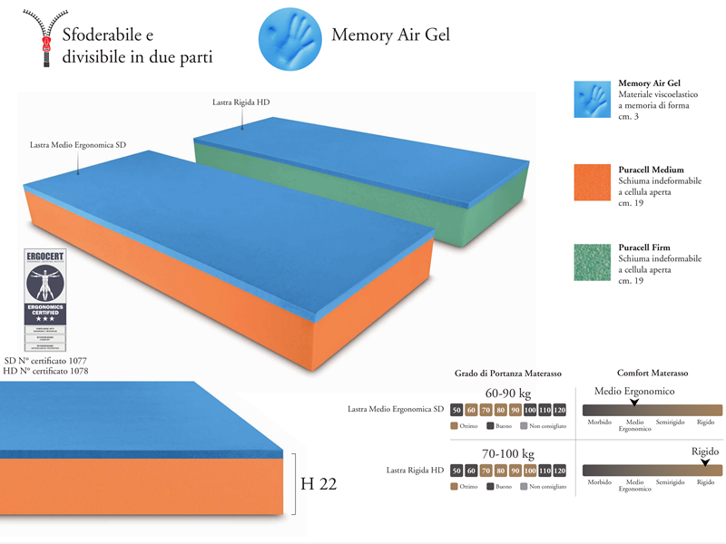 •2 strati di sezione di caratteristiche differenti, Confort Medio Ergonomico SD